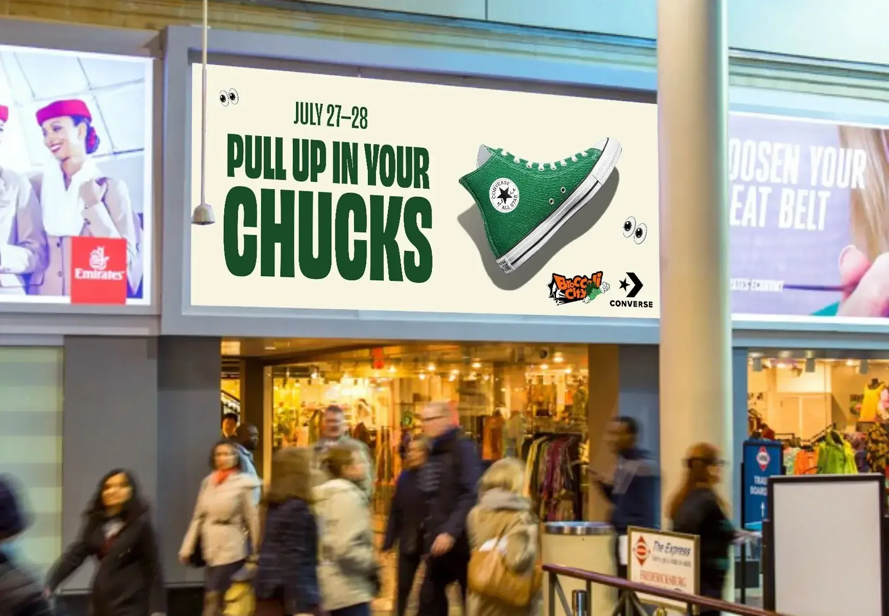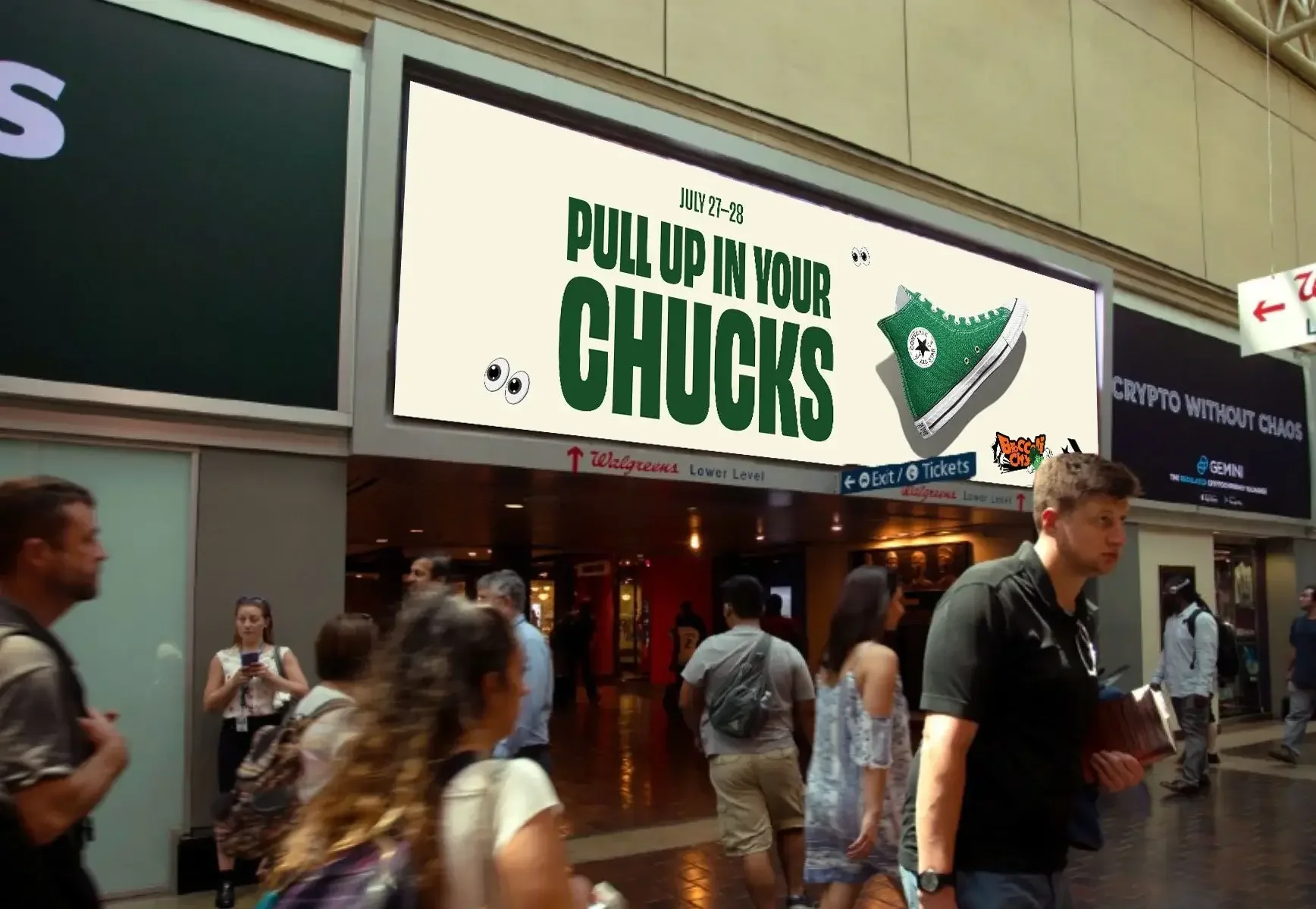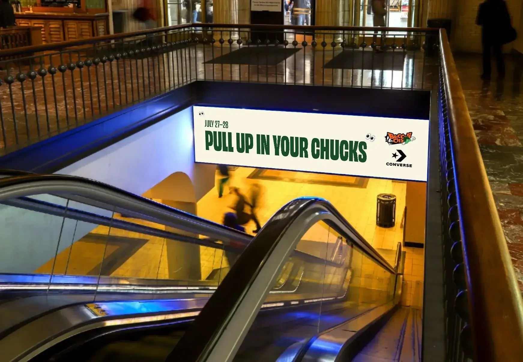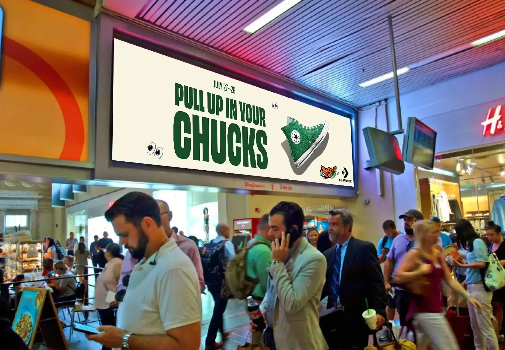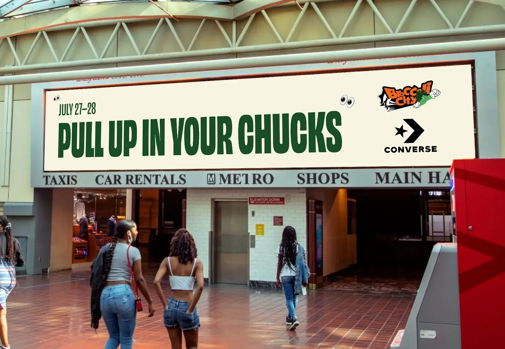 I handled production design for a variety of out-of-home promos, including static and animated digital screens, encouraging fans to wear their Chucks to Broccoli City Festival. Each asset was carefully created in adherence to strict production guidelines.